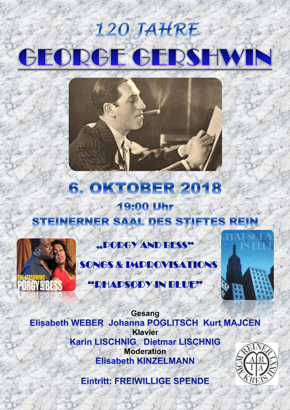 Zum 120. Geburtstag von George Gershwin (1898-1937) werden Songs und Improvisationen, Ausschnitte aus Porgy und Bess sowie die Rhapsody in Blue vorgetragen, unter anderem: